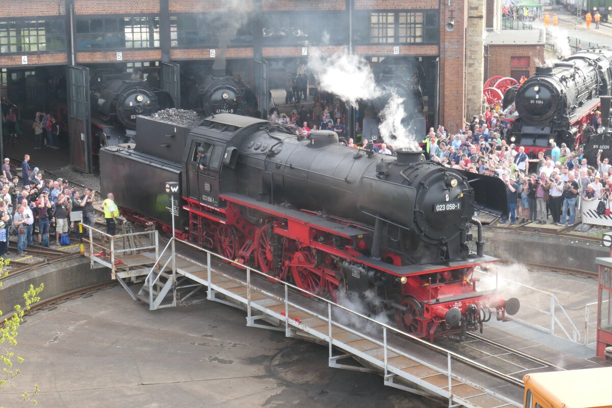 23 058 zum Dresdner Dampfloktreffen 2024 auf der Drehscheibe im Bahnbetriebswerk Dresden-Altstadt