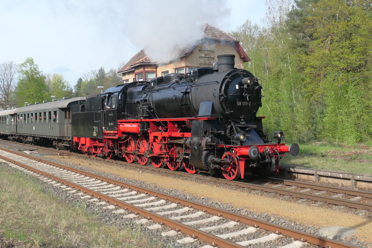 58 1111 mit Sonderzug des Dresdner Dampfloktreffens 2024 im Bahnhof Straßgräbchen-Bernsdorf (Oberlausitz)