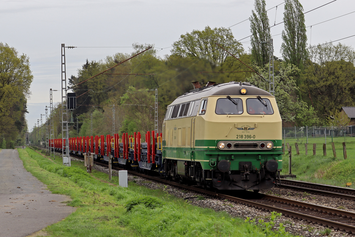 BEG 218 396-0 auf der Hamm-Osterfelder Strecke am BÜ km 66,7 Kerstheiderstr. 11.4.2024