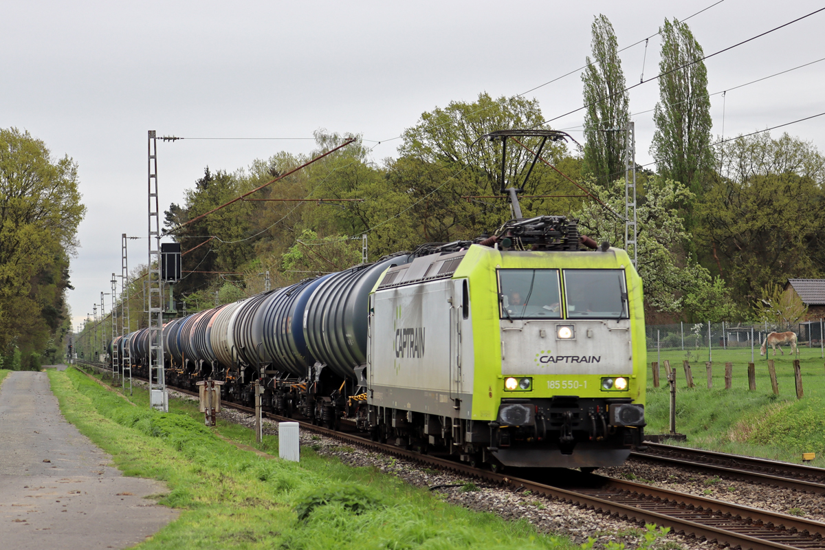 ITL 185 550-1 in Diensten von Captrain auf der Hamm-Osterfelder Strecke am BÜ km 66,7 Kerstheiderstr. 11.4.2024