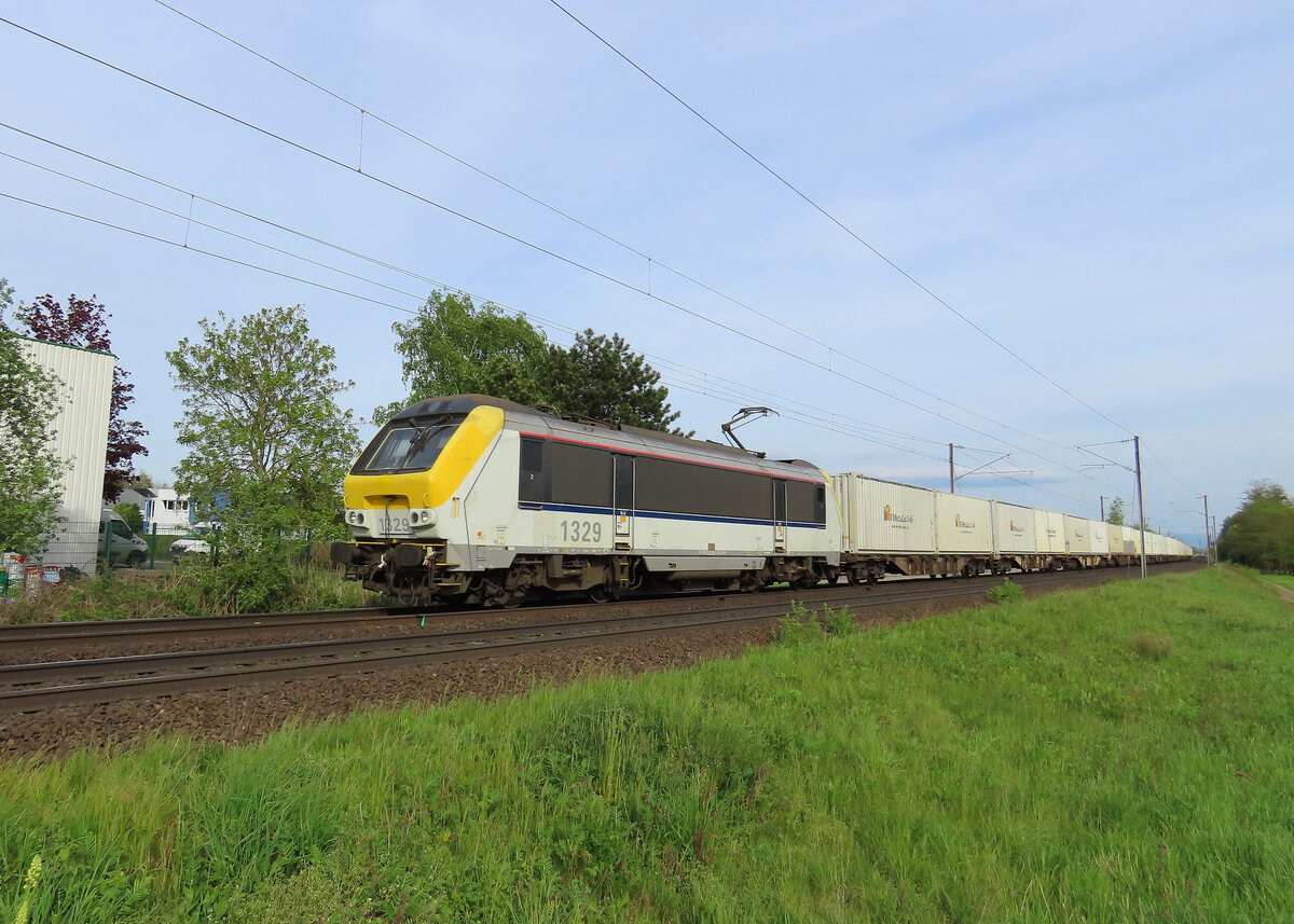 Mommenheim - 14. April 2024 : HLE 1329 mit einem KLV in Richtung Belgien.