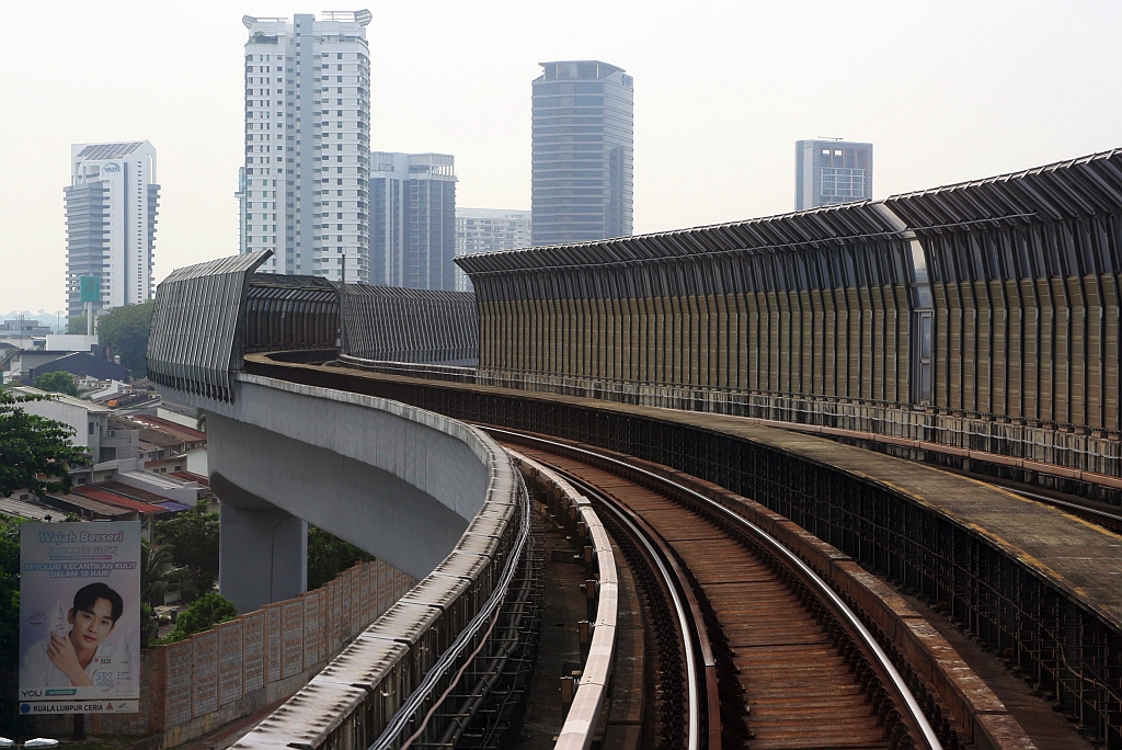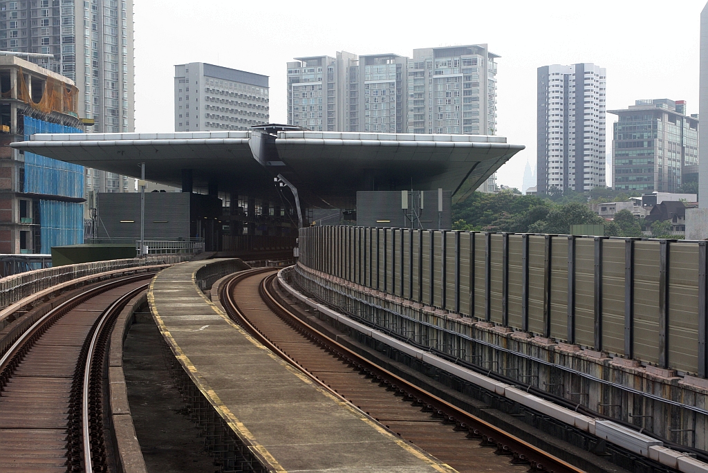 rapidKL MRT Stesen Phileo Damansara (KG12) am 12.März 2024 mit der Weichenverbindung zur Wendeanlage.