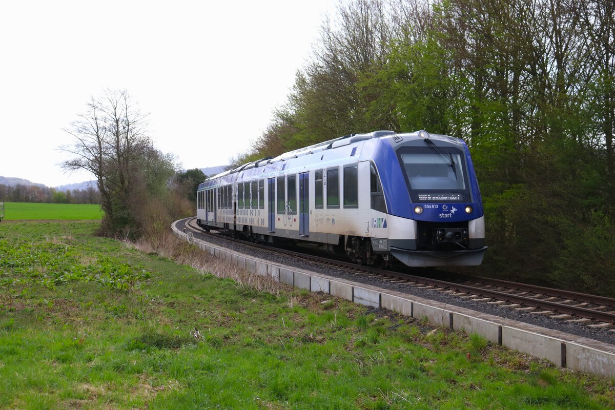 Regionalverkehr Start Alstom Coradia iLint Wasserstofftriebzug 554 113 am 05.04.24 auf der Taunusbahn