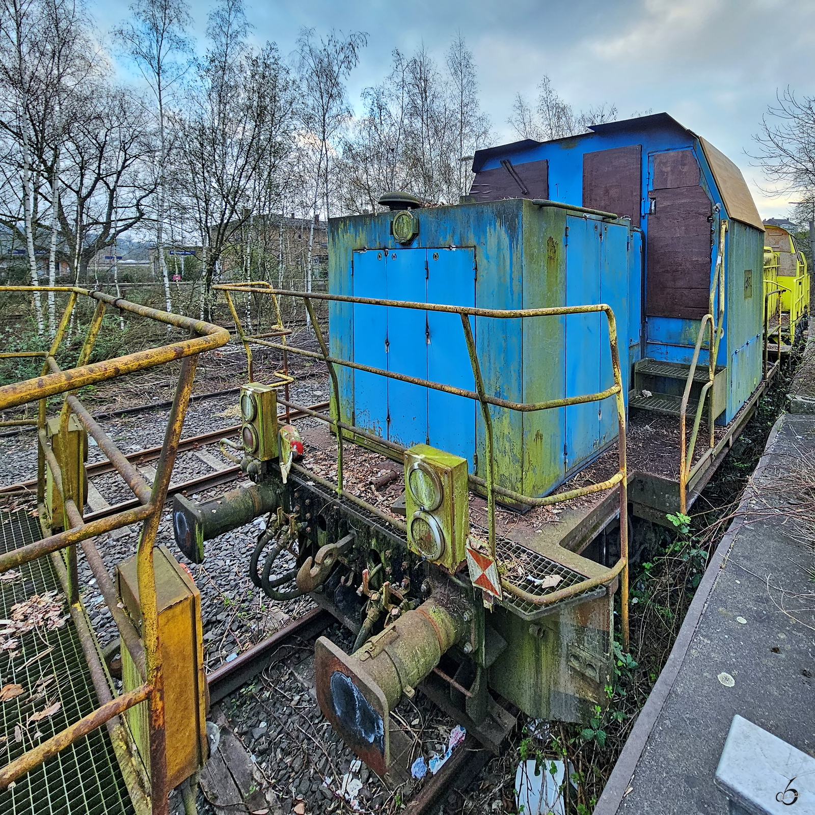 Diese gerupfte Lok der Verkehrsbetriebe Peine Salzgitter stand im März 2024 in der Nähe des Hattinger Bahnhofes.