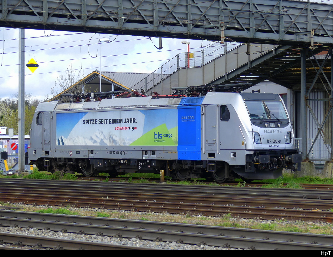 Railpool - Lok 91 80 6 187 008-8 abgestellt in Pratteln am 02.04.2024 .. Standort des Fotografen ausserhalb der Geleisanlagen