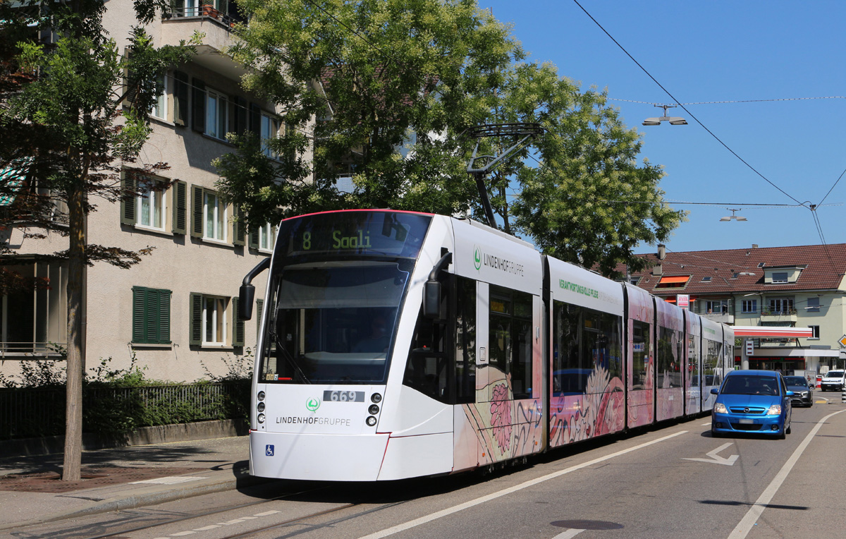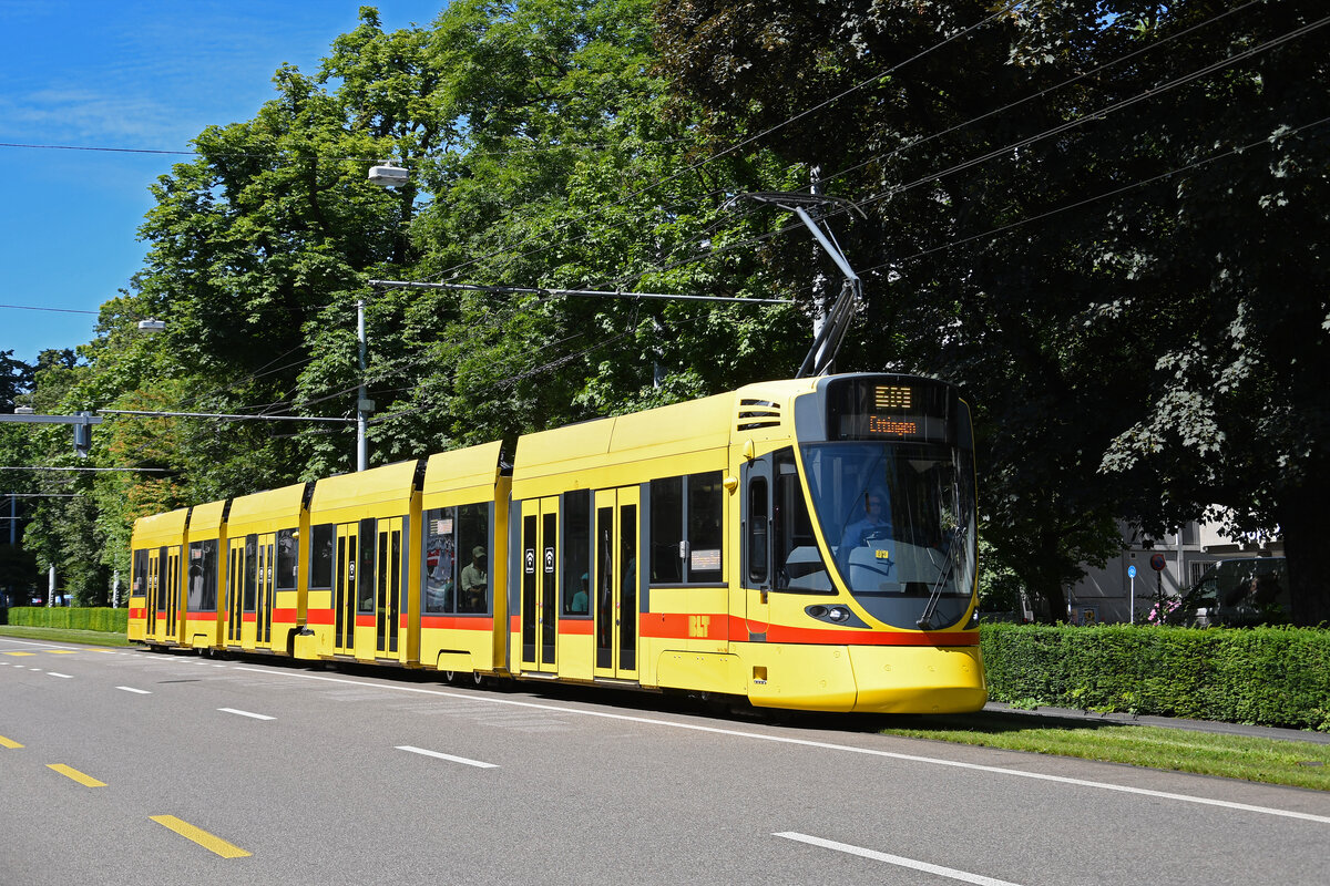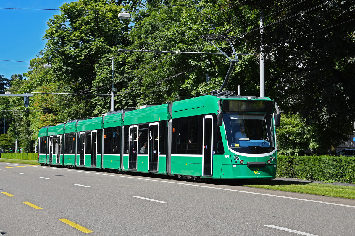 Be 6/8 Combino 324, auf der Linie 8, fährt am 08.07.2024 zur Haltestelle am Aeschenplatz. Aufnahme Basel.