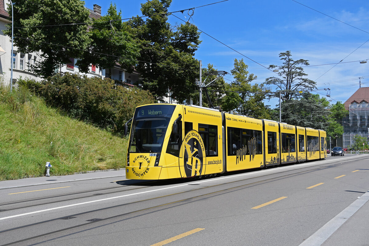 Be 6/8 Combino 667 YB Tram, auf der Linie 9, fährt am 09.07.2024 zur Haltestelle Kursaal. Aufnahme Bern.