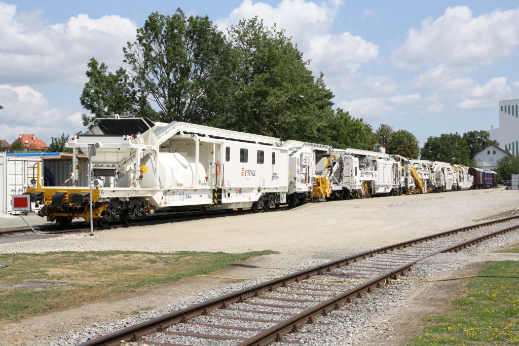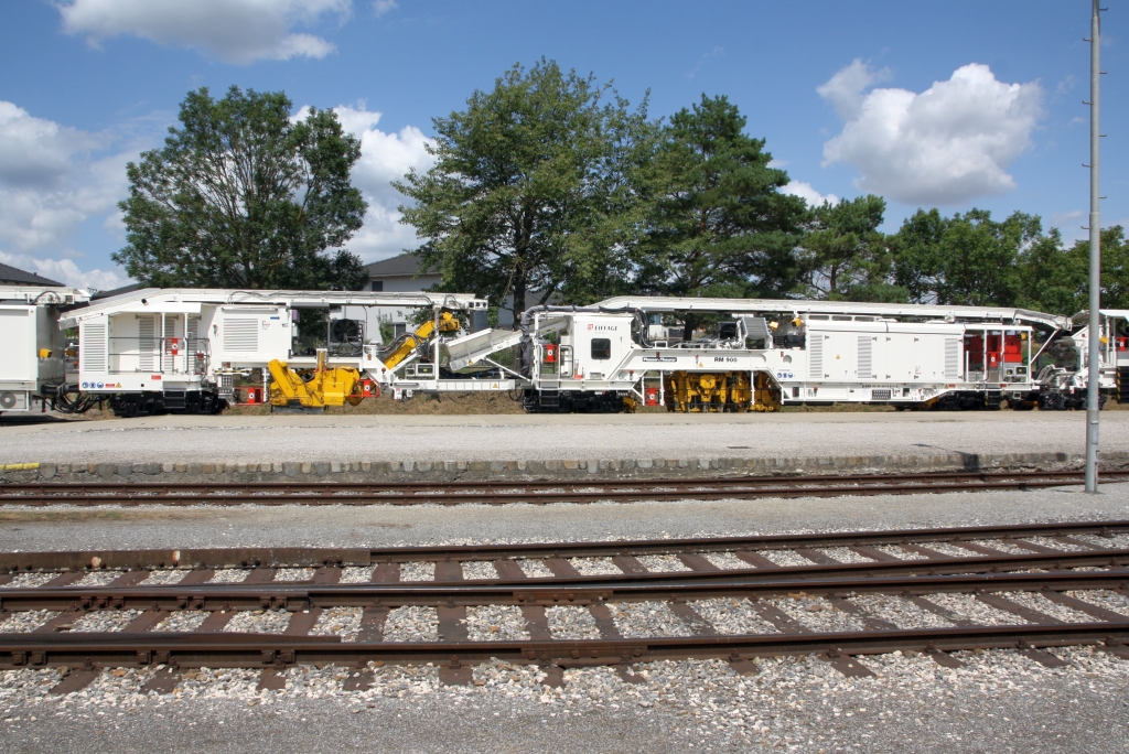 Bettreinigungsmaschinen D-ERD 99 80 9214 011-5 und 012-3 (Hersteller: Plasser & Theurer, RM 900 SAW und AHM, Baujahr: 202?, Ma.Nr.: 7402 - 7407) am 03.August 2024 in Ernstbrunn.