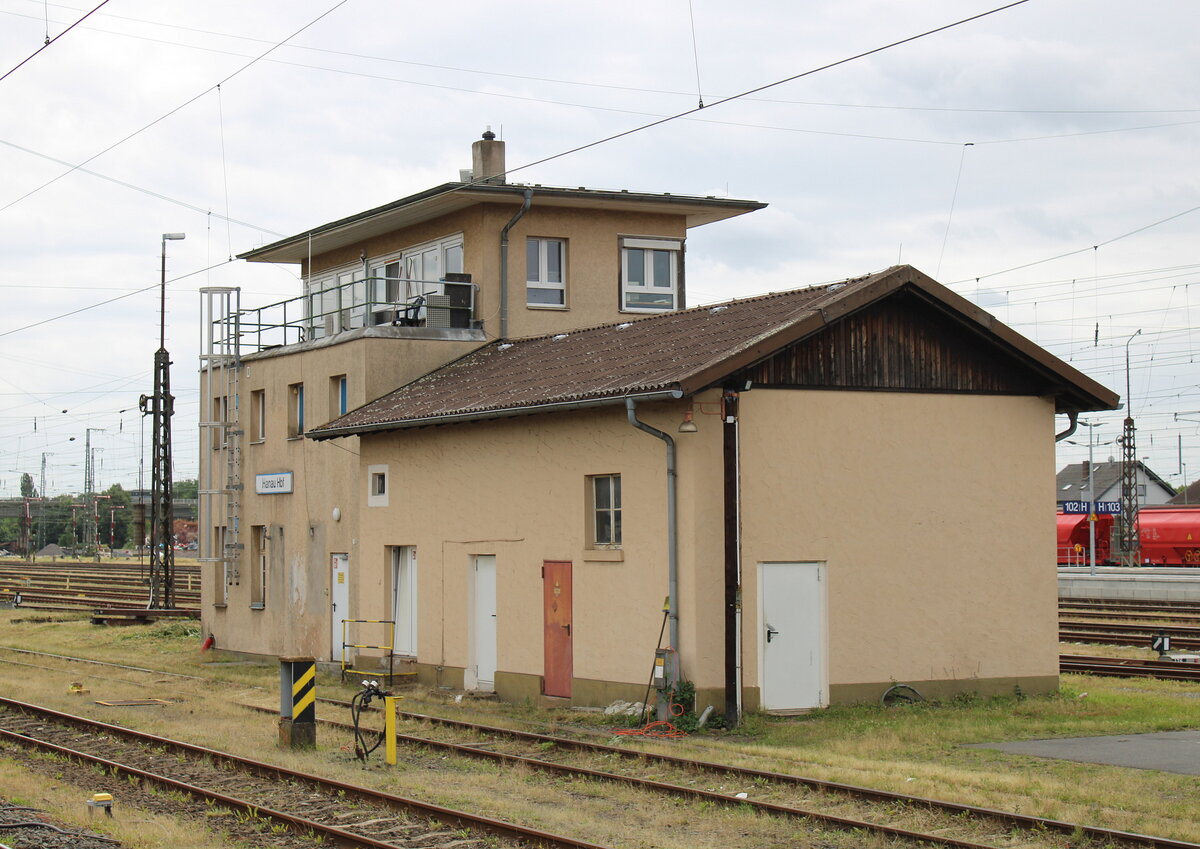 Blick auf das alte Stellwerk Pl in Probstzella. Das Stellwerk regelte die Einfahrten in den Bw-Bereich und in die Gütergleise in der Bahnhofsmitte. Es wurde am 29.08.1997 außer Betrieb genommen und durch ein ESTW ersetzt. Probstzella 02.08.2023