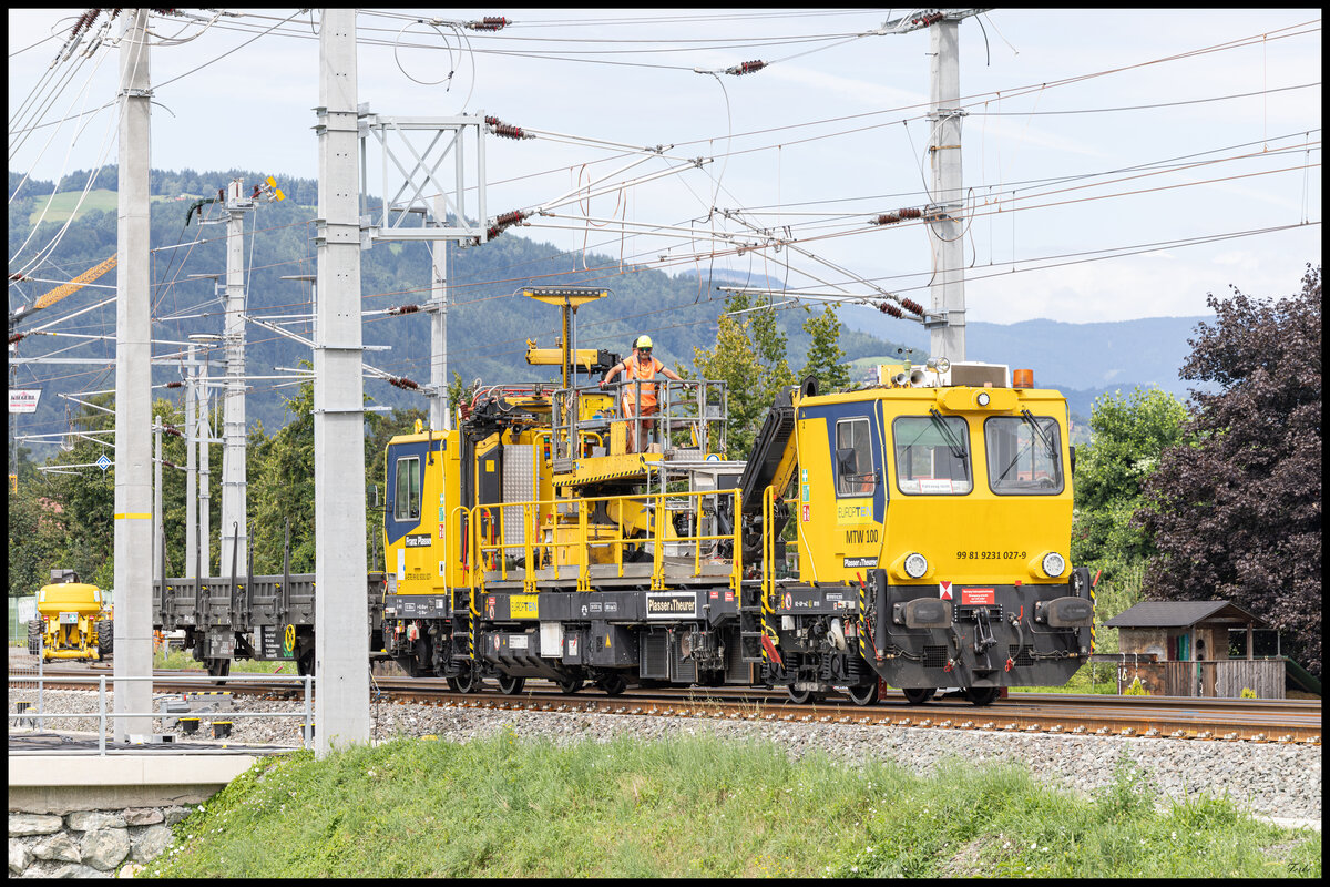 Sommerzeit ist Baustellenzeit .. Auf der Steirischen Westbahn wie sie der neue Besitzer der GKB Infrastruktur , die Öbb nennen , wird fleißig gearbeitet. Hier bei Groß Sankt Florian entsteht eine neue Brücke über die Laßnitz. 17. Juli 2024