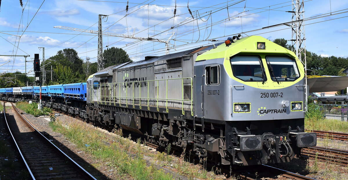 Captrain Deutschland CargoWest GmbH, Gütersloh [D] mit ihrer "186 155-8" [NVR-Nummer: 91 80 6186 155-8 D-ITL] und dem Mannesmann Stahlröhrenzug am 31.07.24 Durchfahrt Bahnhof Magdeburg-Neustadt.