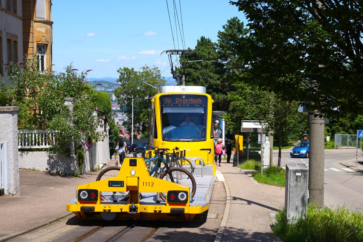 SSB Stuttgart Stadler ZT 4.2 Wagen 1101 und Fahrradwagen 1112 am 09.07.24 in Stuttgart