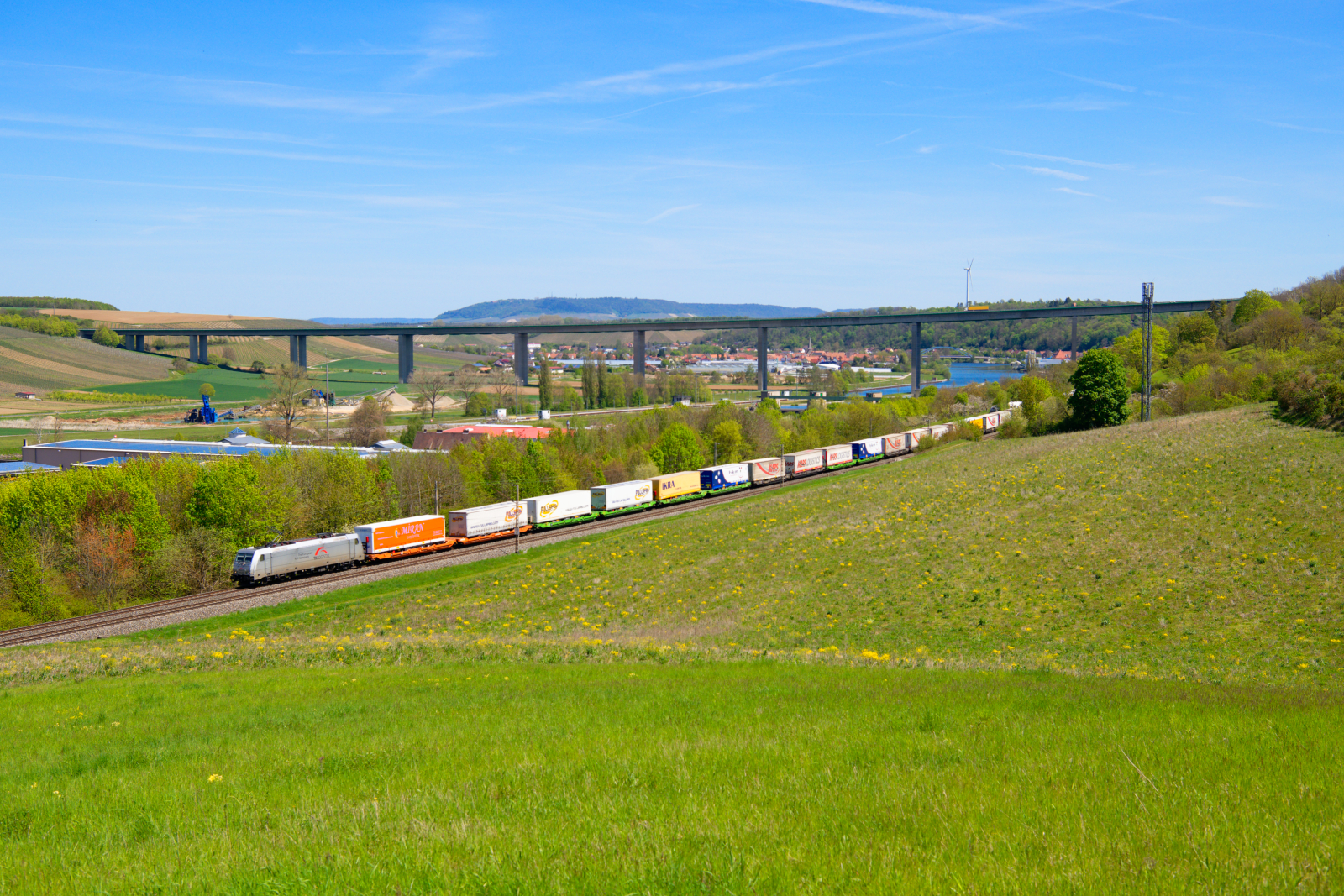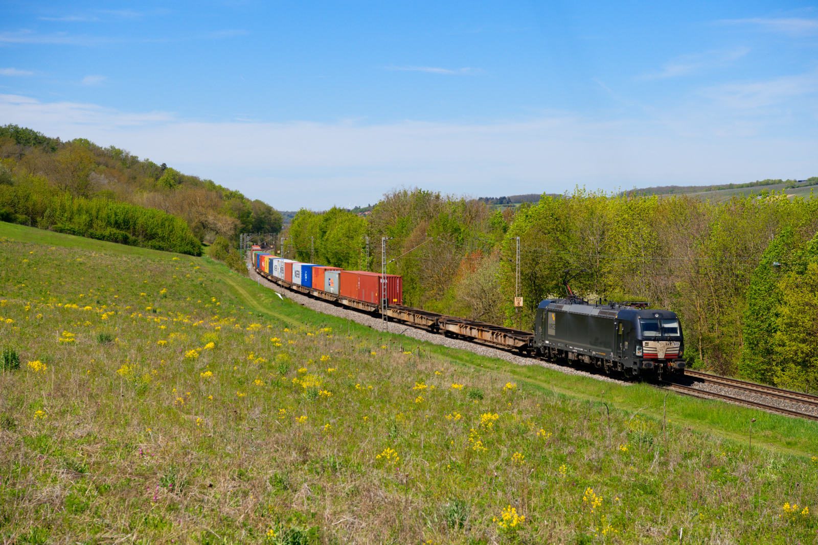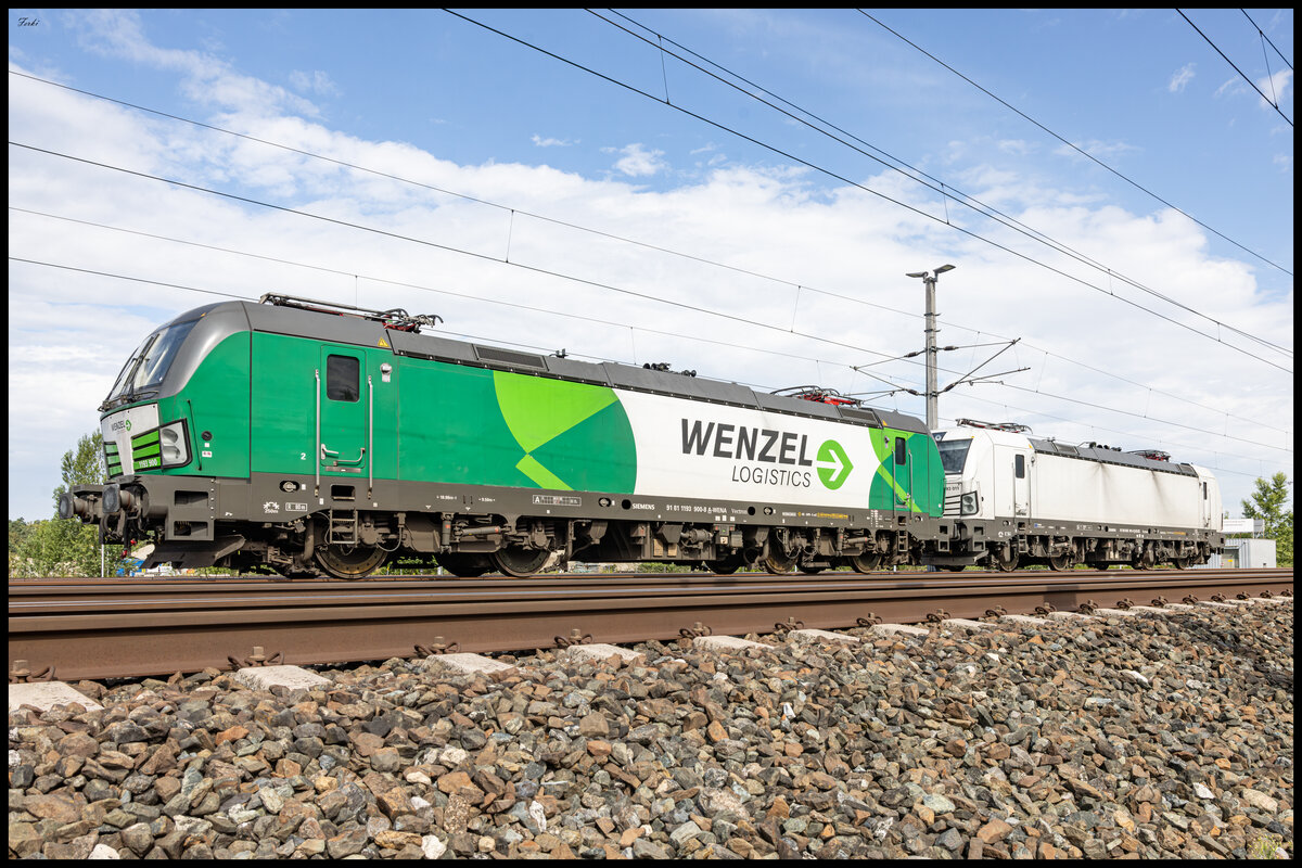 Die 193 967 bespannte Mitte Juli 2024 einen Knickkesselzug in Richtung Süden, und wurde dabei von mir in Wildon fotografiert. Im Hintergrund zu sehen sind die aktuell höchsten Bauwerke der Steiermark nämlich die jeweils 175 Meter hohen Schornsteine des Fernheizkraftwerkes bzw. jene des Gas- und Dampfkraftwerks Mellach