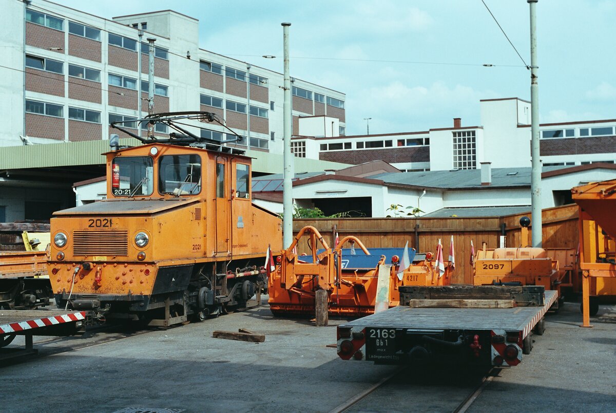Stuttgarter Straßenbahnen (SSB), BW Stuttgart-Wangen, Bauzuglok 2021 (SSB) und weitere Arbeitswagen (1984)