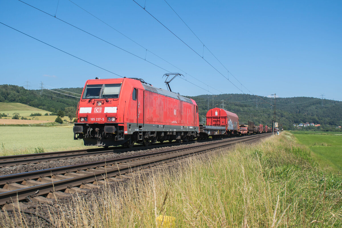 185 237-5 ist am 25.06.2024 mit einem Mischer bei Reilos unterwegs.