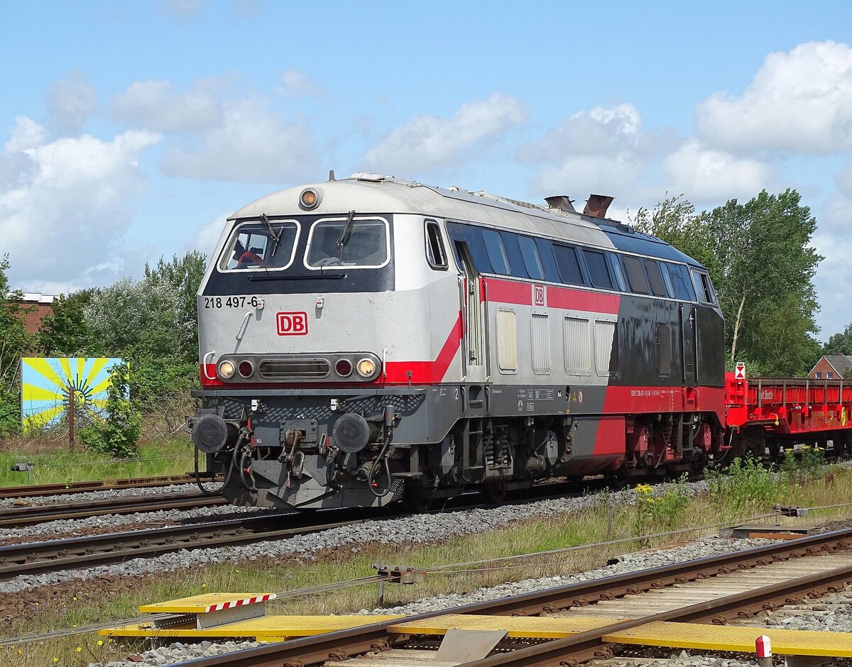 218 497 (Kombi-Look IC/Dampflok) am 05.07.24 beim Rangieren in Niebüll.