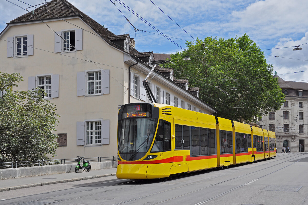 Be 6/10 Tango 181, auf der Linie 11, fährt am 27.07.2024 den Steinenberg hinunter zur Haltestelle Barfüsserplatz. Aufnahme Basel.