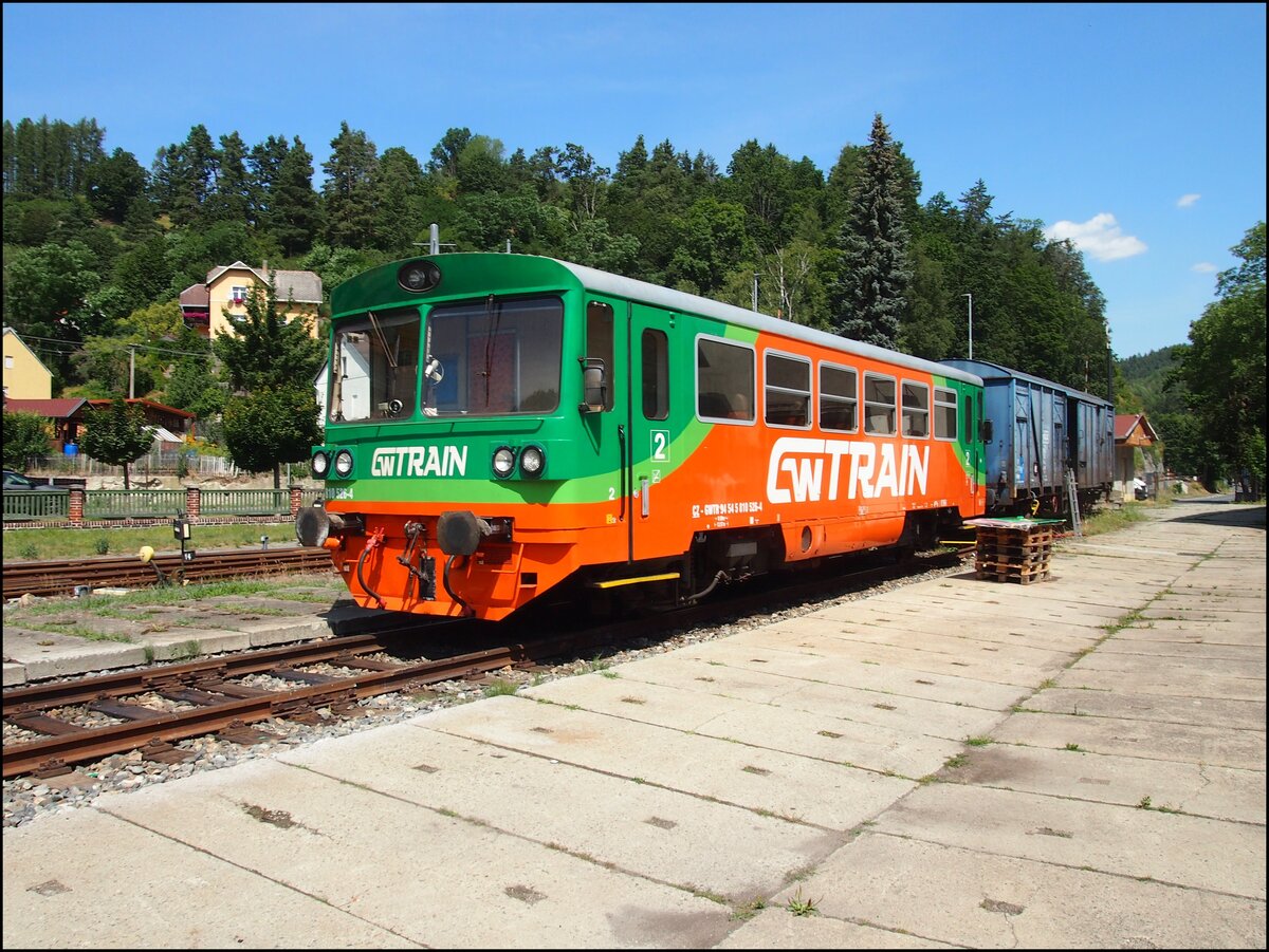 GW Train 810 526-4 in Bahnhof Bečov nad Teplou am 4. 8. 2024.