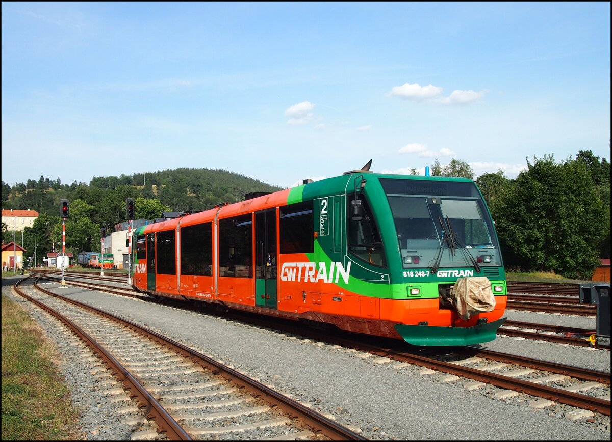 GW Train 818 248-7 in Bahnhof Bečov nad Teplou am 4. 8. 2024.
