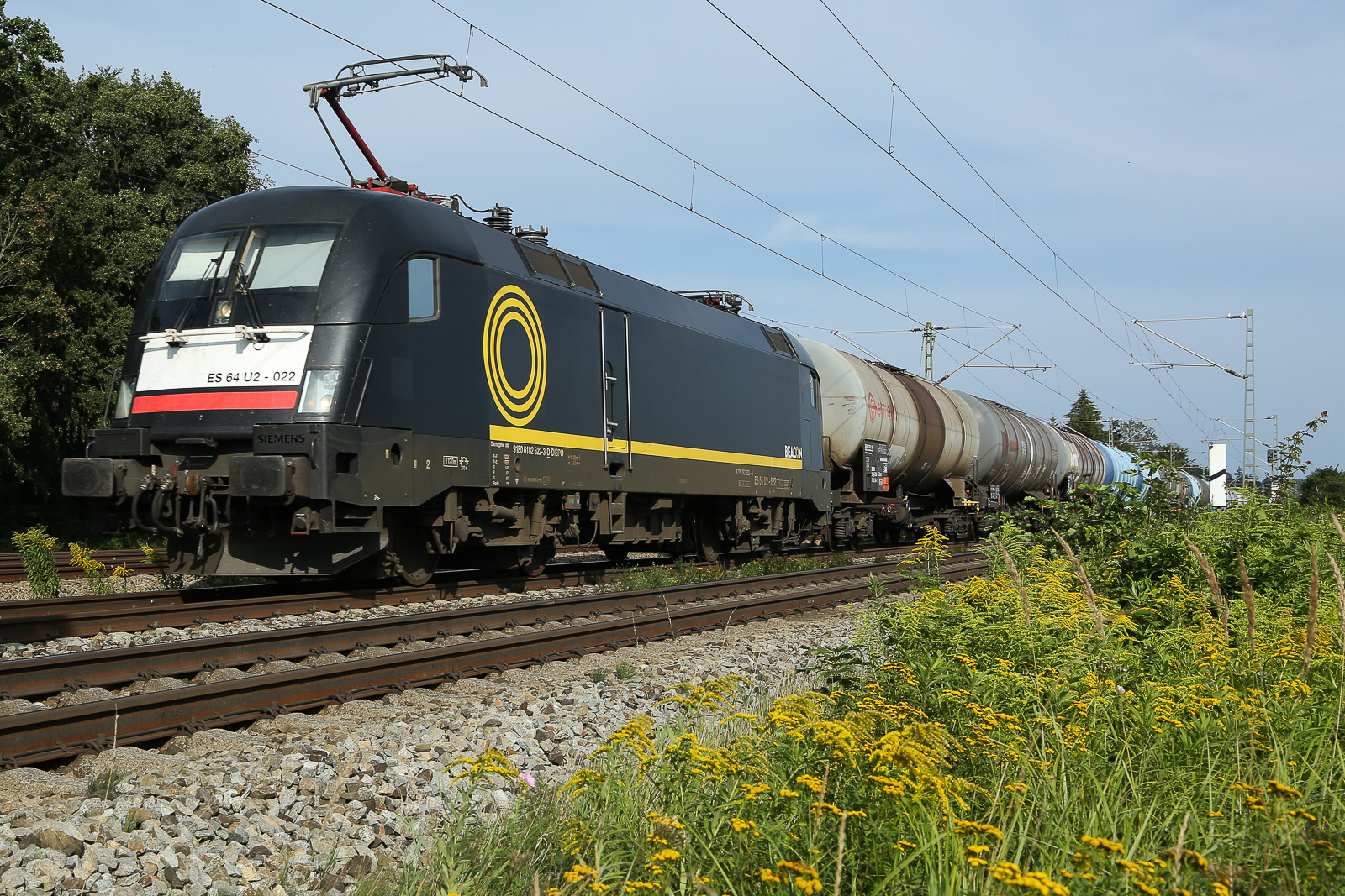 BEACON Rail Siemens Taurus ES 64-U2 022 (182 522-3) in Eglharting am 22.08.2024 mit etwas gelber kanadischer Goldroute