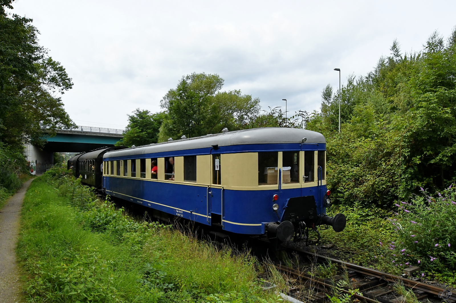 Der Partywagen B405 von Railflex entstand aus einem 1934 bei der Deutschen Reichsbahn Gesellschaft als VB 145 0 93 in Dienst gestellten Steuerwagen. (Hattingen, August 2024)