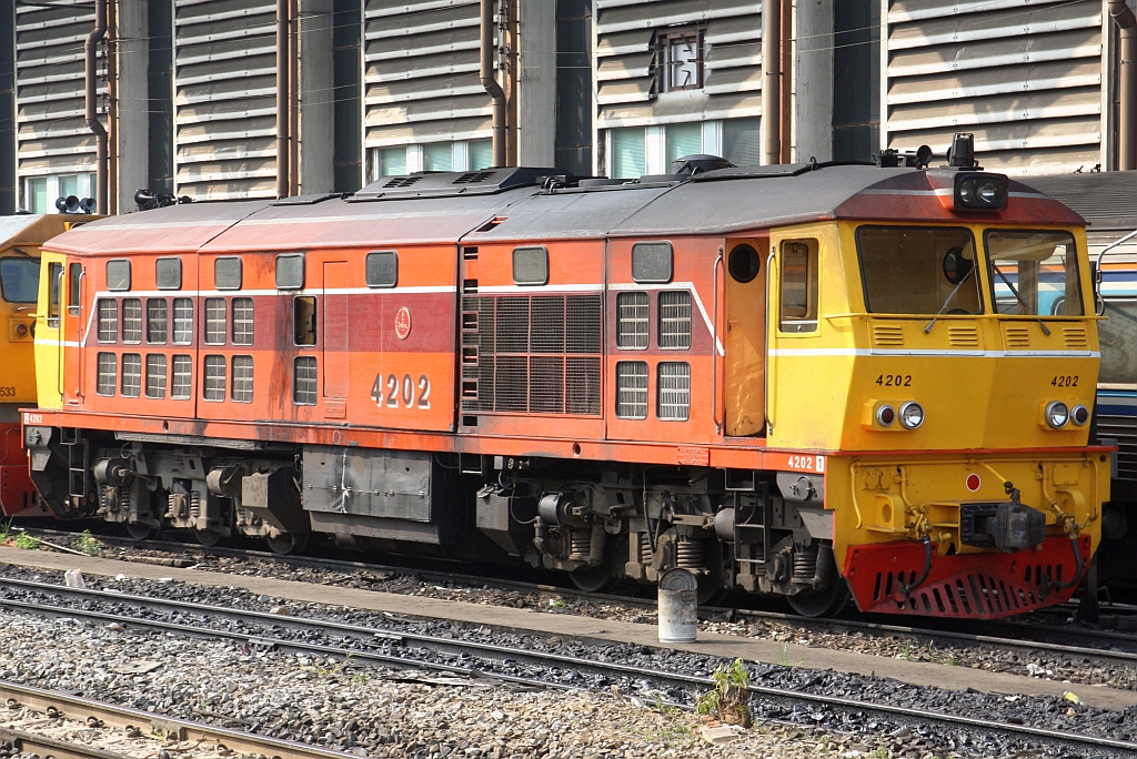 AHK 4202 (Co'Co', de, Krupp, Bj.1980, Fab.Nr. K-5475) wartet am 10.Dezember 2023 im Depot Hua Lamphong auf den nächsten Einsatz.