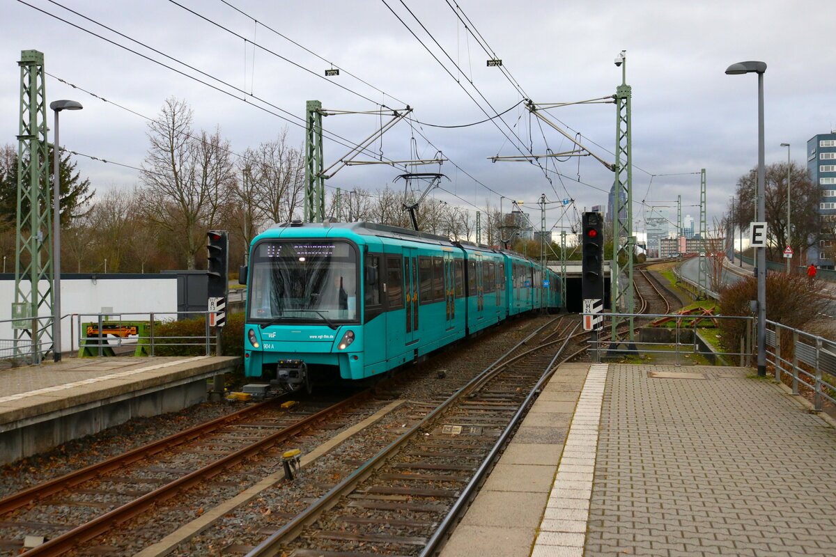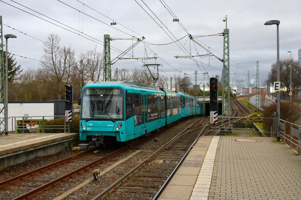 VGF Bombardier Flexity Swift U5-50 Wagen 869 am 03.02.24 in Frankfurt Industriehof