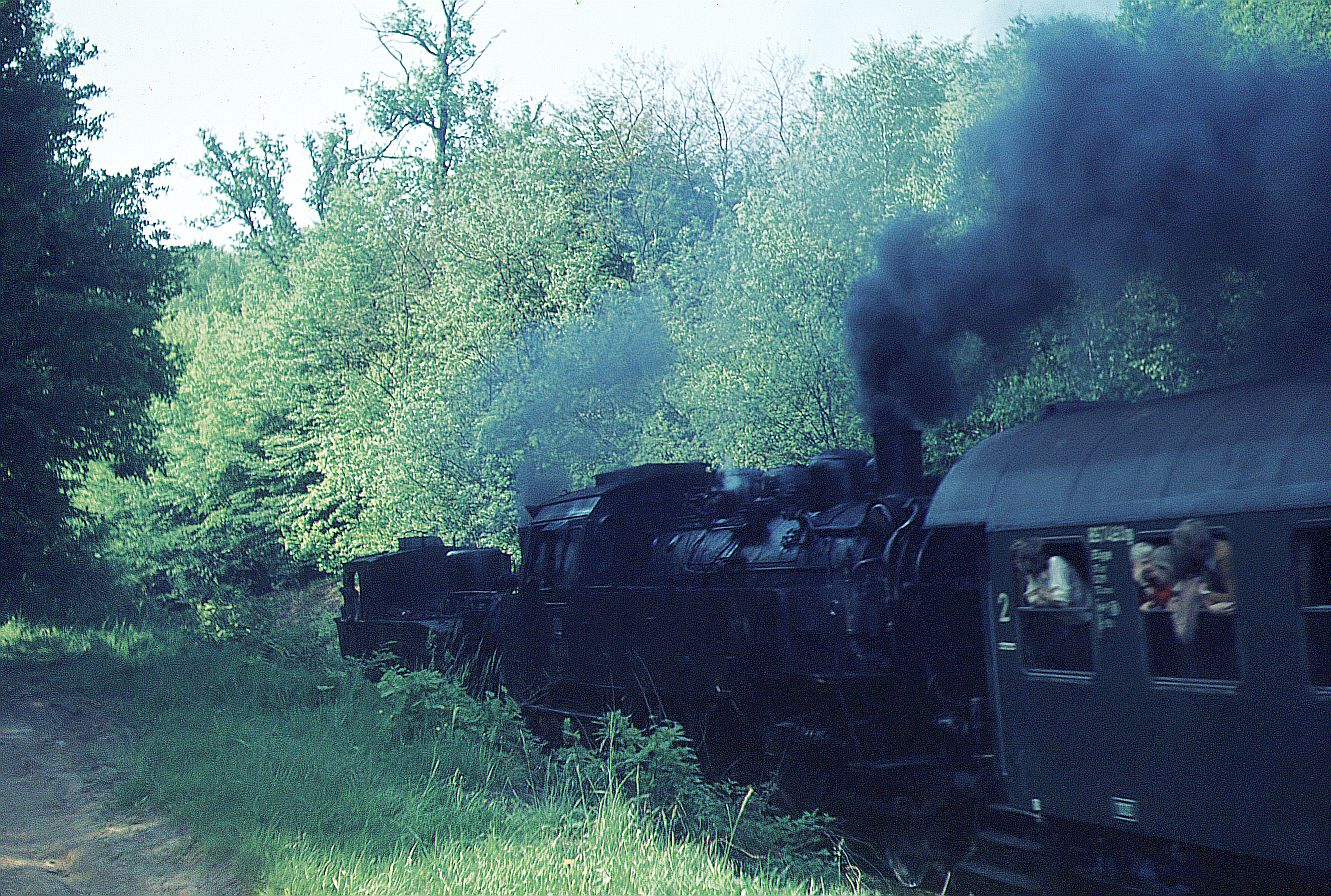 SSB Stuttgart_Filderbahn__GES Sonderzug mit Loks 11 und 064 519-2 nach Neuhausen/F. von S-Vaihingen kommend im Rohrer Wald vor Leinfelden.__27-05-1973