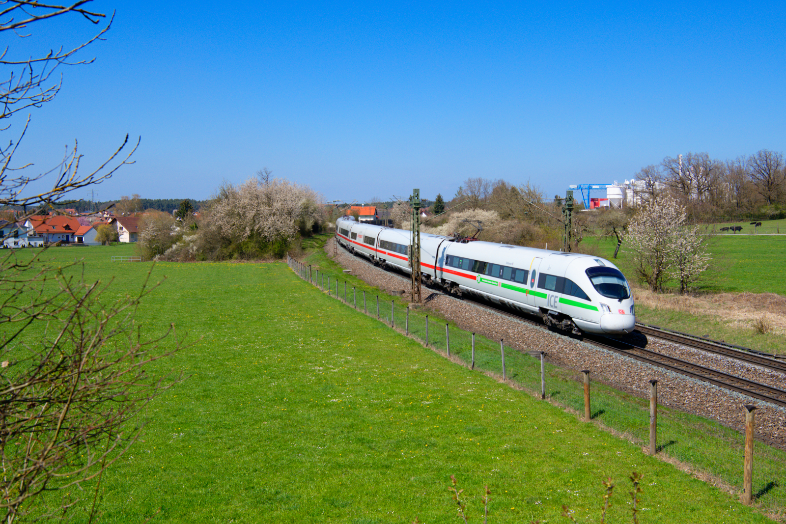 Niederschopfheim - 23. Juni 2023 : 401 055 am ICE 2881 von Frankfurt/Main nach Basel. Er fährt als Ersatz für den ICE 373.