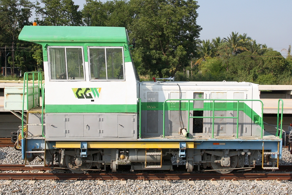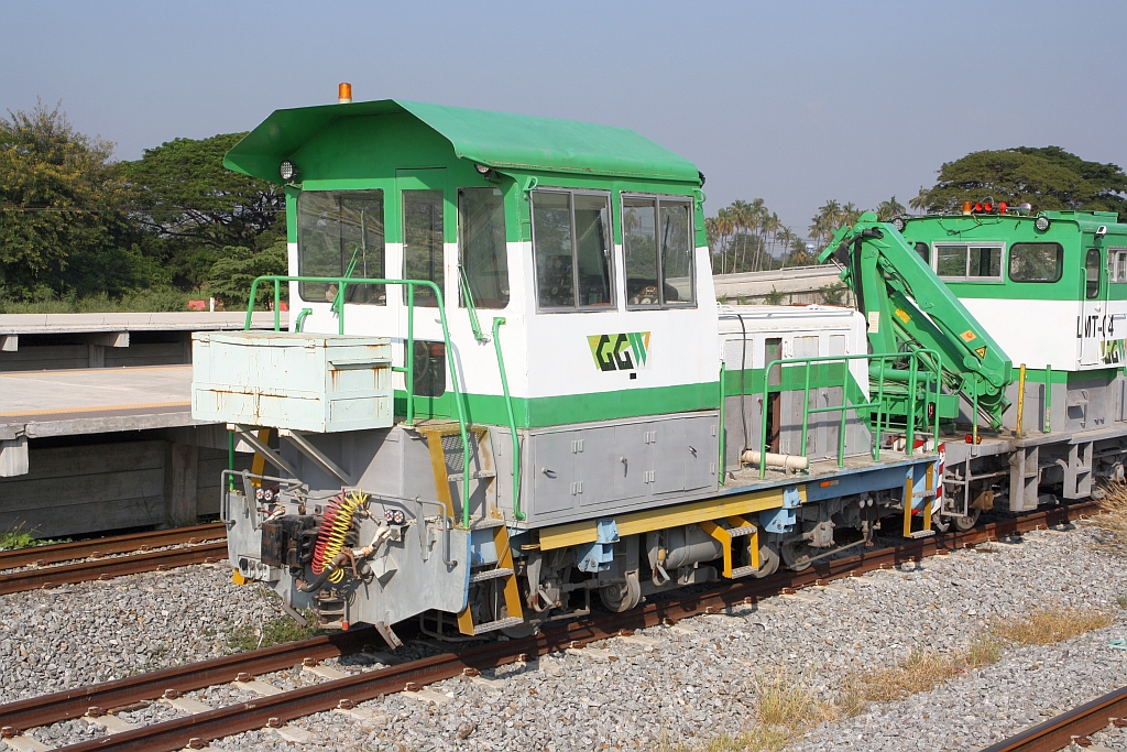 Am 10.Dezember 2023 waren in der Nong Pladuk Junction einige, für den 2 gleisigen Ausbau der Southern Line benötigte Bahndienstfahrzeuge zu sehen, so auch dieser Schwerkleinwagen der Type TMC400A von GGW (Green Generation Worldwide Co.,Ltd.).