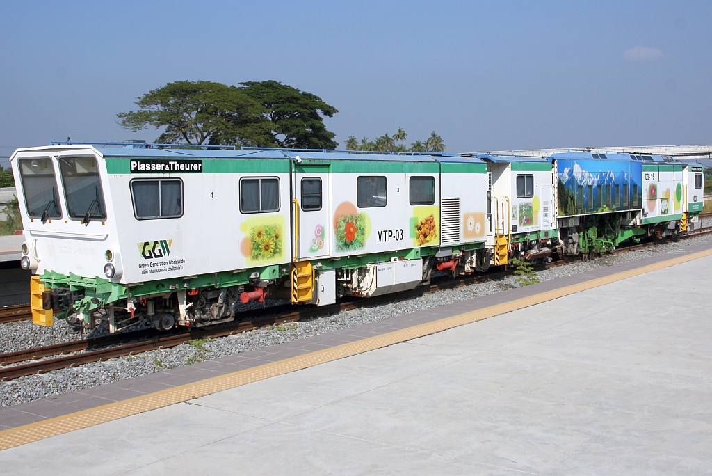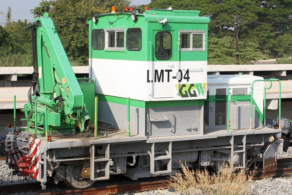Am 10.Dezember 2023 waren in der Nong Pladuk Junction einige, für den 2 gleisigen Ausbau der Southern Line benötigte Bahndienstfahrzeuge zu sehen, so auch dieser Schwerkleinwagen der Type TMC200 mit der Betriebsnummer LMT-04 von GGW (Green Generation Worldwide Co.,Ltd.).