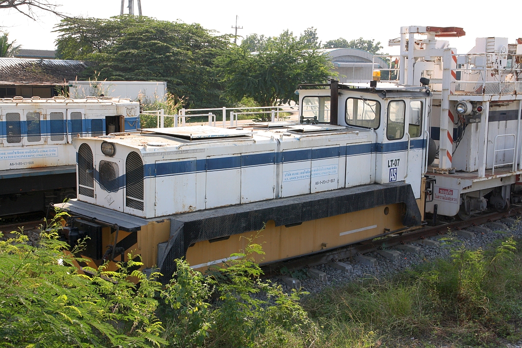 AS (AS =Associated Engineering (1964) Co., Ltd.) betreibt in der Nong Pladuk Junction einen Wartungs- und Instandhaltungsstützpunkt und somit trifft man dort auch jede Menge Bahndienstfahrzeuge an. - So am 10.Dezember 2023 einen Motorturmwagen mit der AS-Bezeichnung LT-05 (Hersteller: Fuji Heavy Industries, Type EW, Baujahr: 1974-78, Fab.Nr.: ????).
