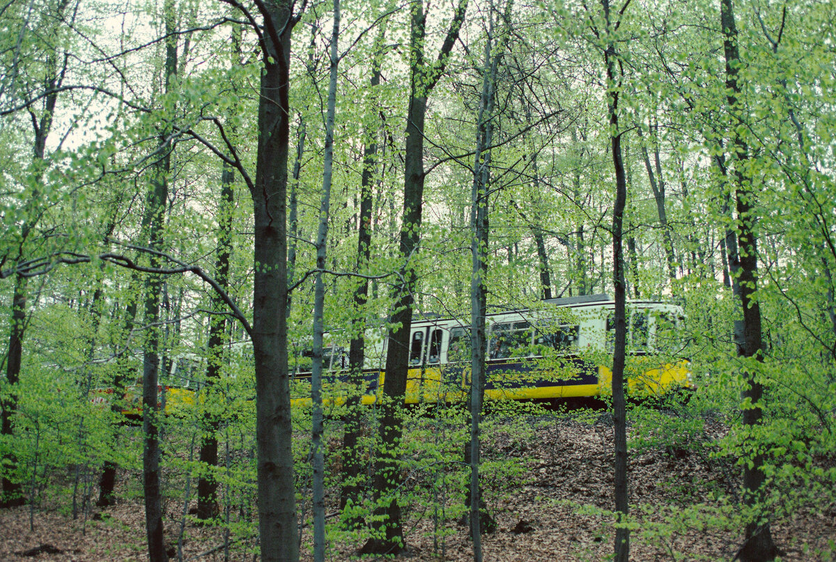 Das Waldstück auf der Linie 15 zwischen Stelle und Ruhbank war für mich immer ein Erlebnis. 1983 fährt ein Zug aus zwei GT4 Richtung Ruhbank.
