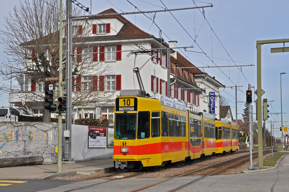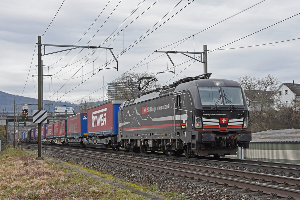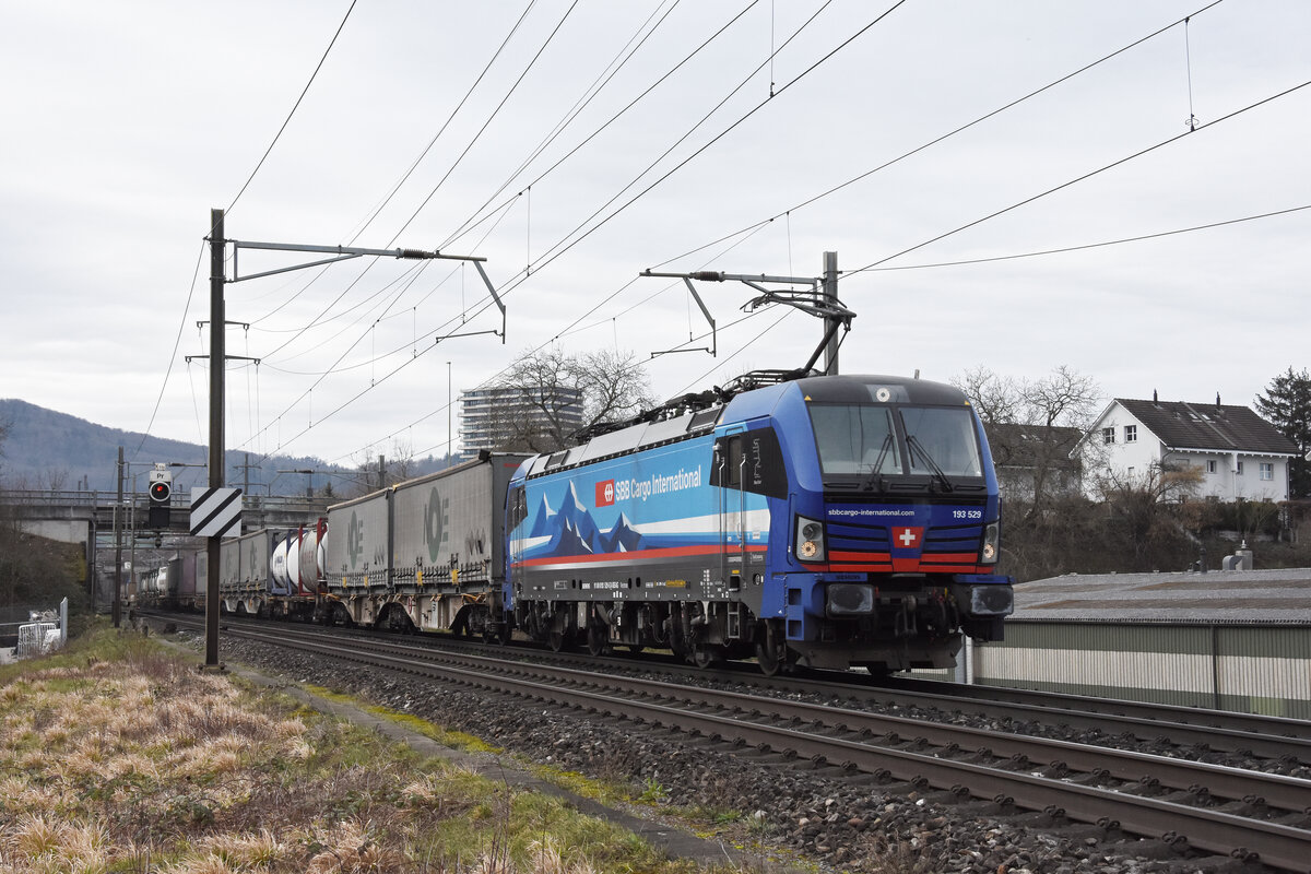 SBB 11172 zieht ein Am 843 durch Pratteln am 13 Februar 2024.