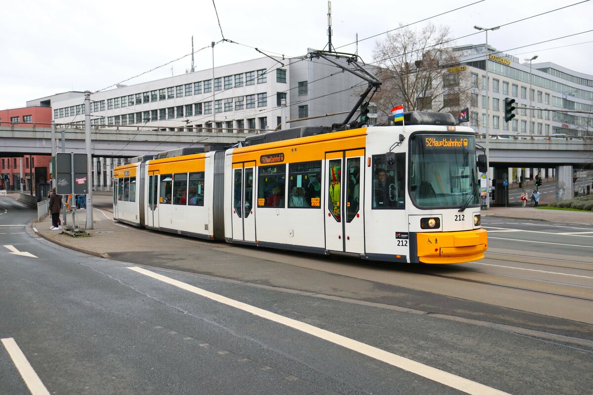 Wagen 9114 am 01.02.2024 um 13:44 Uhr als M10 an der Haltestelle "Lübecker Straße" in Richtung Hauptbahnhof.