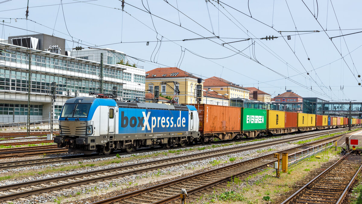 91 80 6193 840 D-BOXX mit einem Containerzug am 29.06.2024 in Regensburg Hauptbahnhof.
