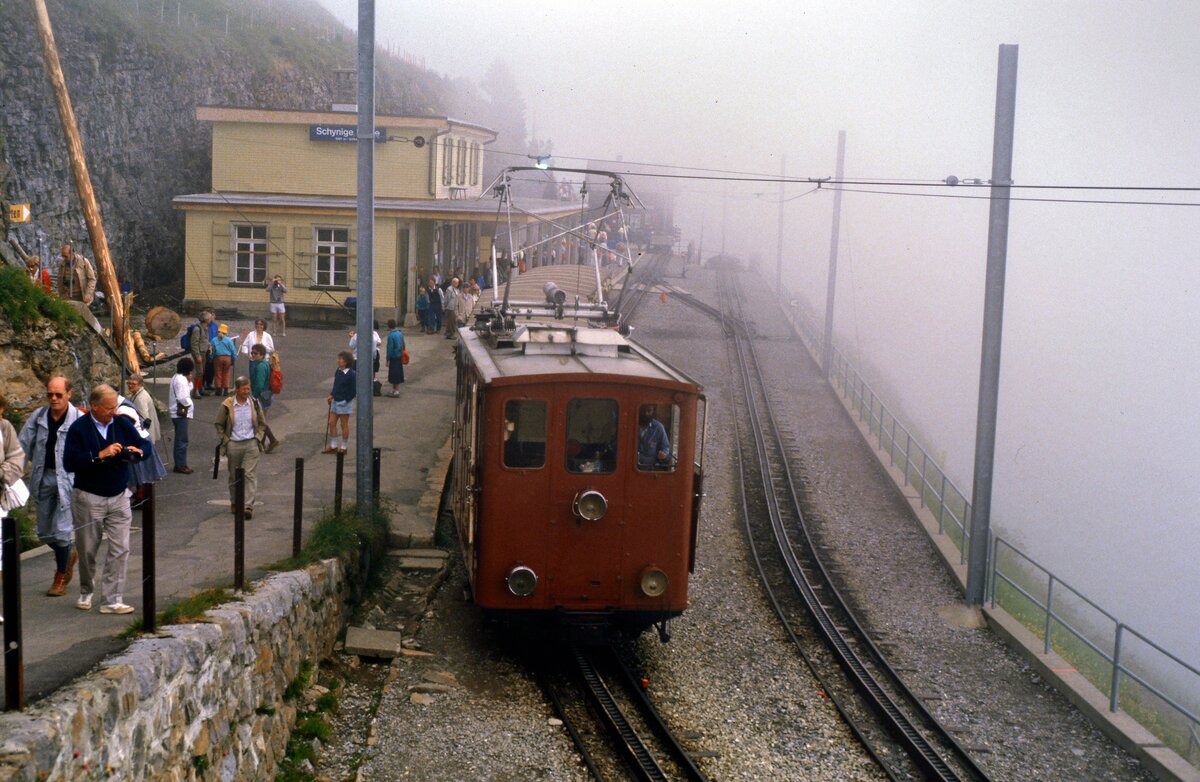 Bergstation Schynige Platte mit einer Zahnradlok der Baureihe He 2/2.
