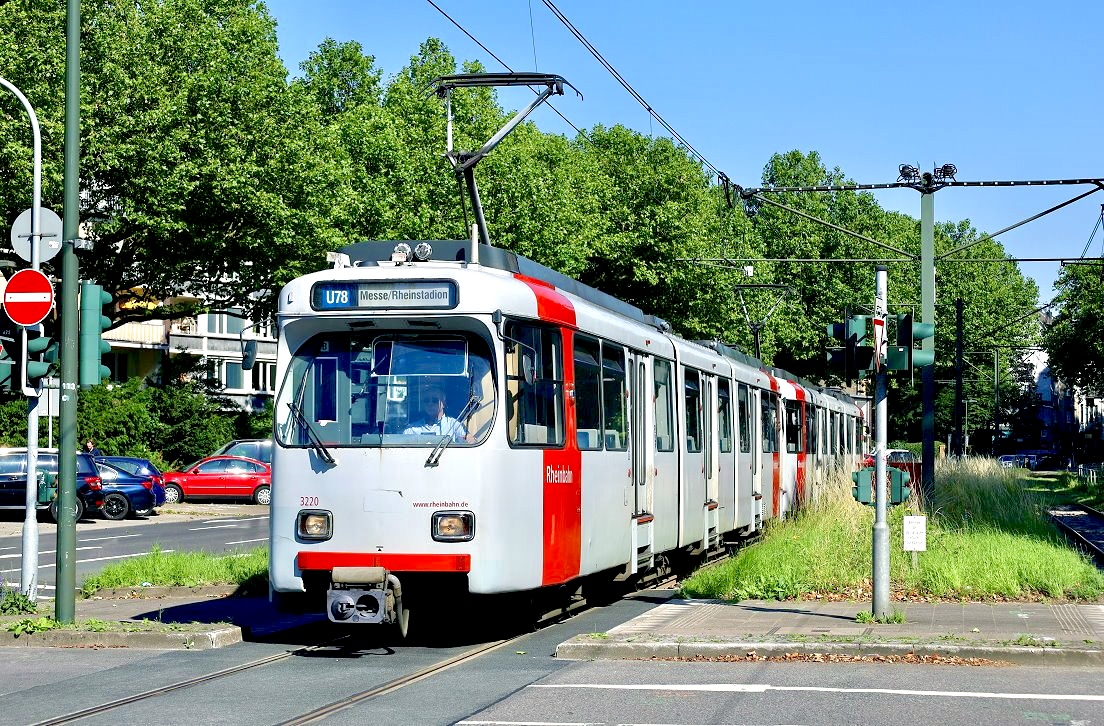 ... fährt die Stadtbahn-Doppeltraktion kurz vor erreichen der Haltestelle Hans-Rießer-Straße.