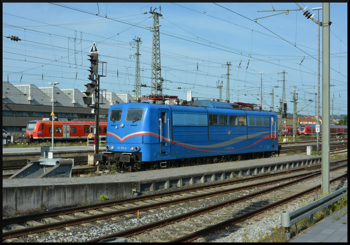 Ein Schaukelpferd ruht sich aus: SRI Rail Invest GmbH 151 170-8 am 18.07.2024 auf Gleis 423 in Würzburg Hbf.