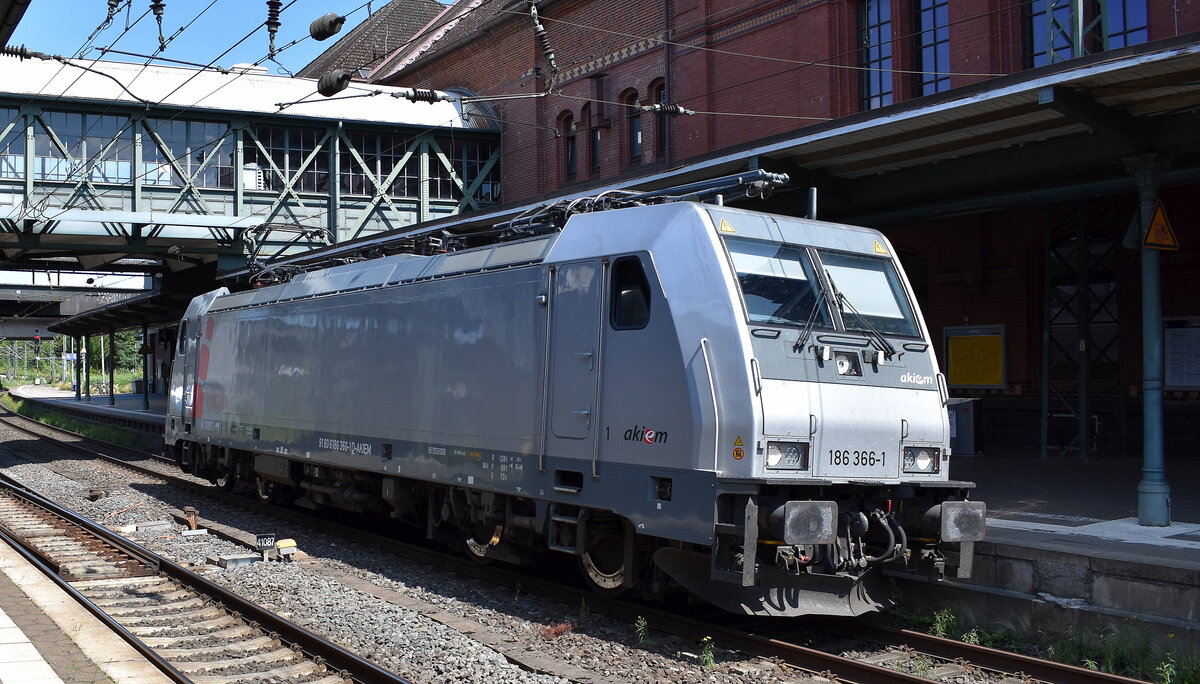 HSL Logistik GmbH, Hamburg-Tiefstack [D] mit der angemieteten "186 366-1" [NVR-Nummer: 91 80 6186 366-1 D-AKIEM] am 15.07.24 Durchfahrt Bahnhof Hamburg-Harburg.