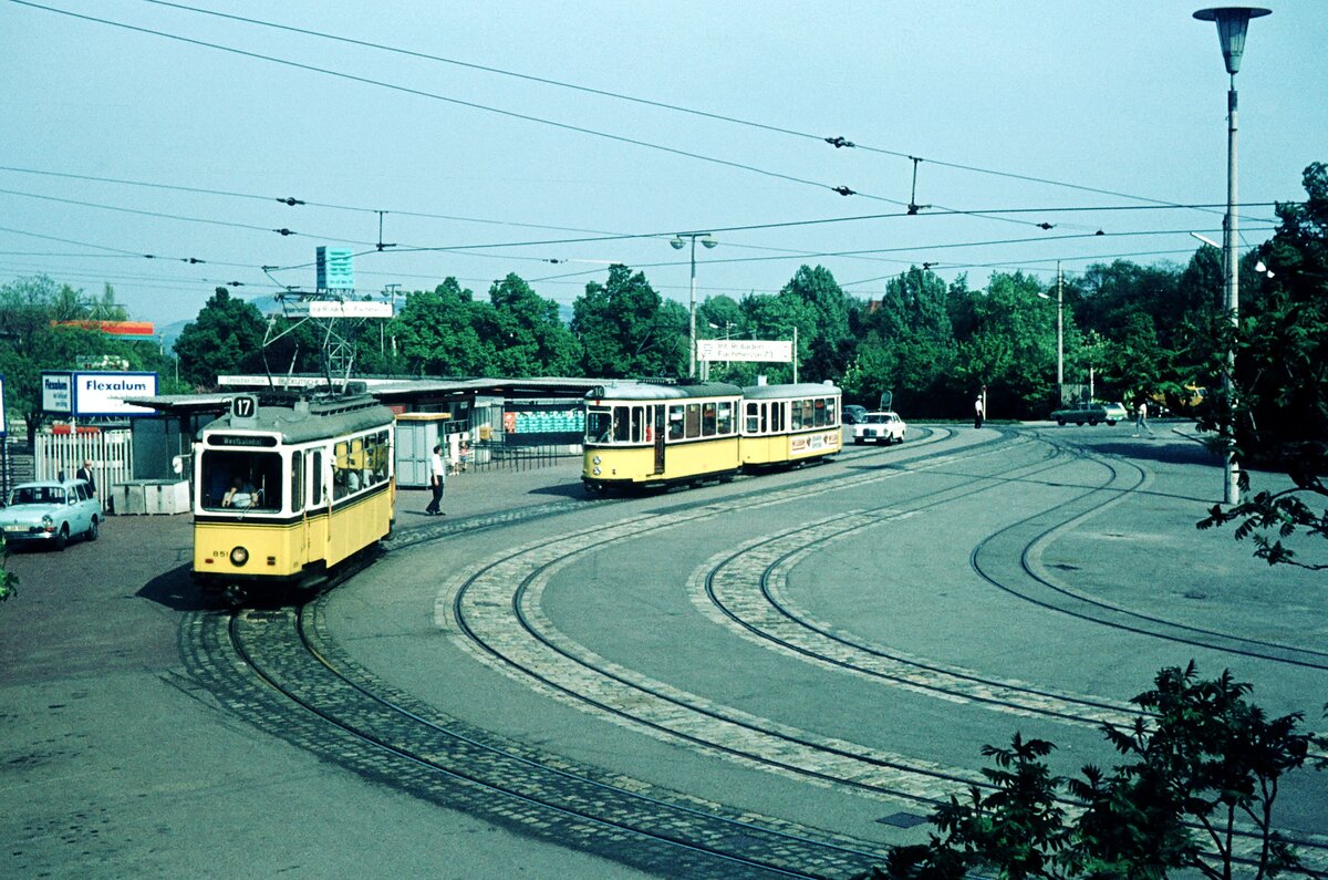 SSB Stuttgart__GS-Tw 851 auf Sonderfahrt in der Endschleife 'Killesberg'.__05-05-1973