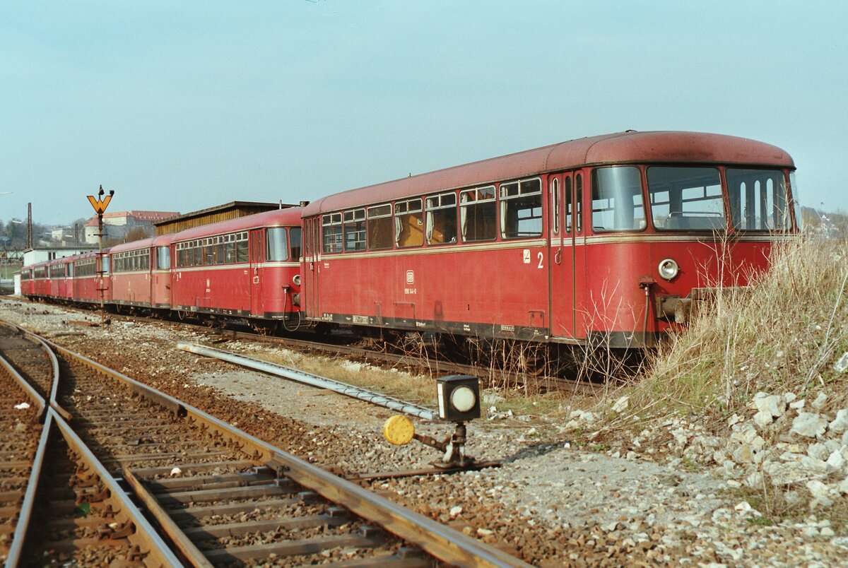 Das BW Tübingen konnte noch sehr lange zahlreiche ETs der DB-Baureihe 425 alt (ET 25) vorweisen (vorn ET 425 110-4).
