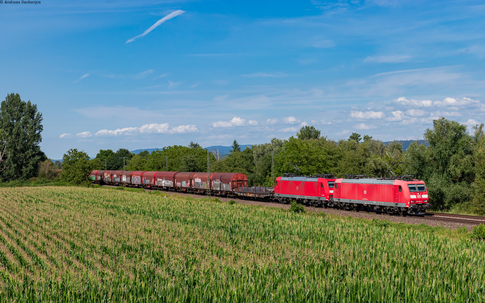 185 085 und 185 119 mit dem EZ 45007 (Mannheim Rbf - Chiasso) bei Ringsheim 18.7.24