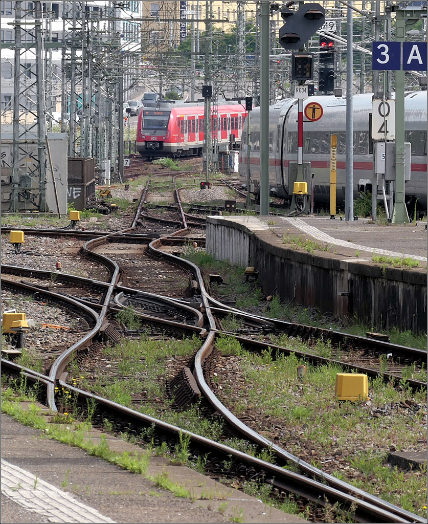 ... des Gleise abzweigend von Gleis 2 im Stuttgarter Hauptbahnhof, auf dem in der Regel der IC Zürich - Stuttgart ein und ausfährt.