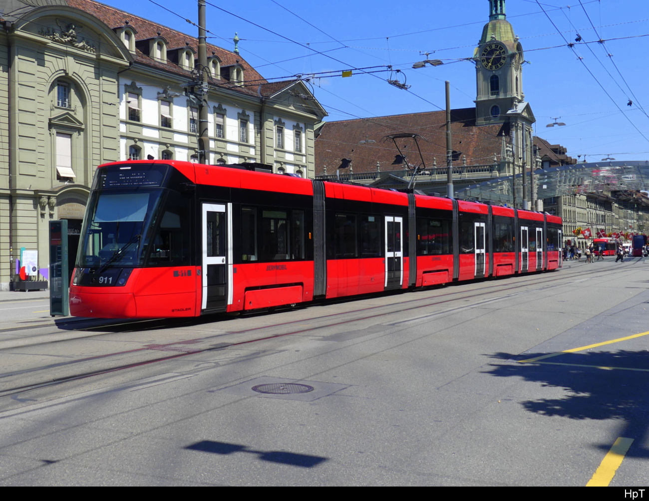 Bern Mobil - Tram Be 6/8 911 unterwegs in der Stadt Bern am 2024.07.23
