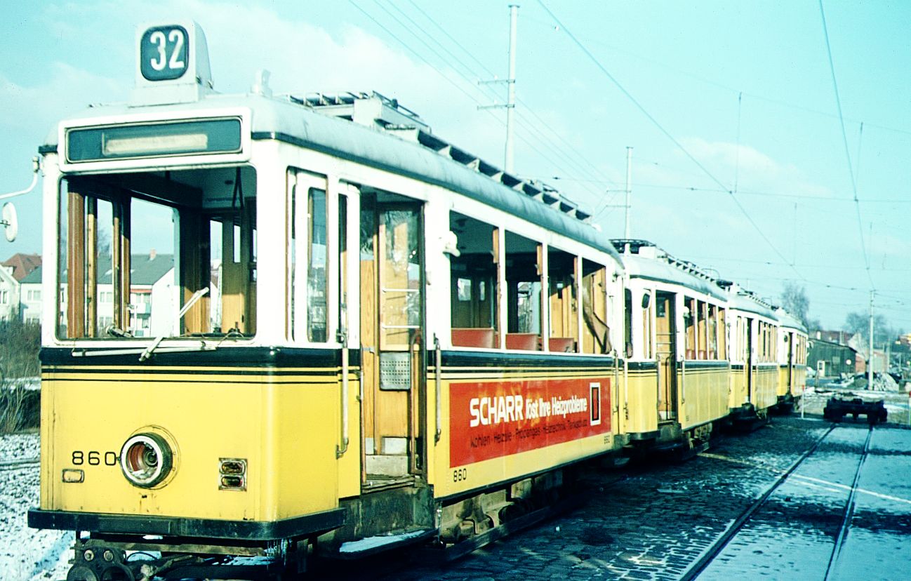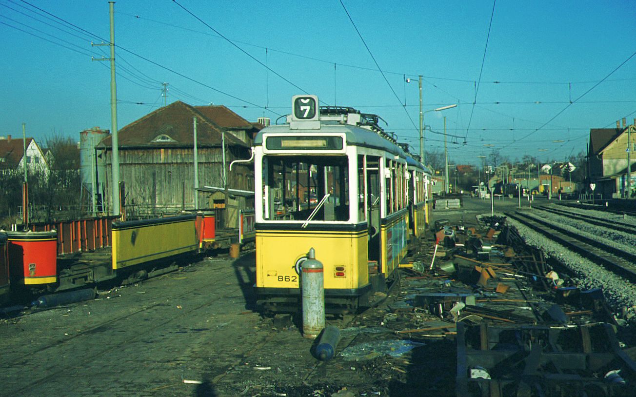 SSB Stuttgart__Gartenschau-TW (GS) 860 [ME 1939] mit 3 weiteren GS-Tw zum Verschrotten im Bf S-Möhringen.__01-02-1971