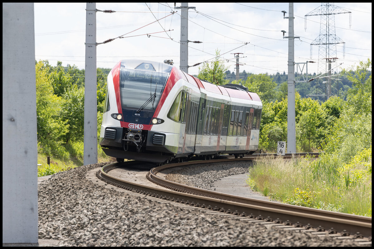 VT63.02 verlässt den Bahnhof Wettmanstätten richtung Süden . Nächster Halt Hengsberg . 24. Mai 2024