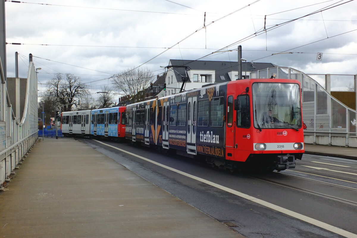 KVB Tw 2318 Köln, Im Weidenbruch Linie 4, Leyendeckerstraße Segmentwerbung "tiefblau" 13.03.2023