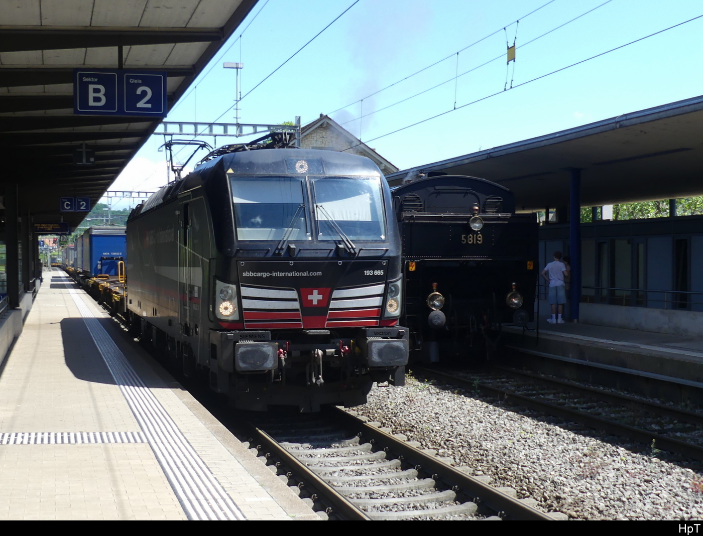 SBB - Lok 193 655 mit Güterzug bei der durchfahrt im Bhf. Frick am 2024.05.18