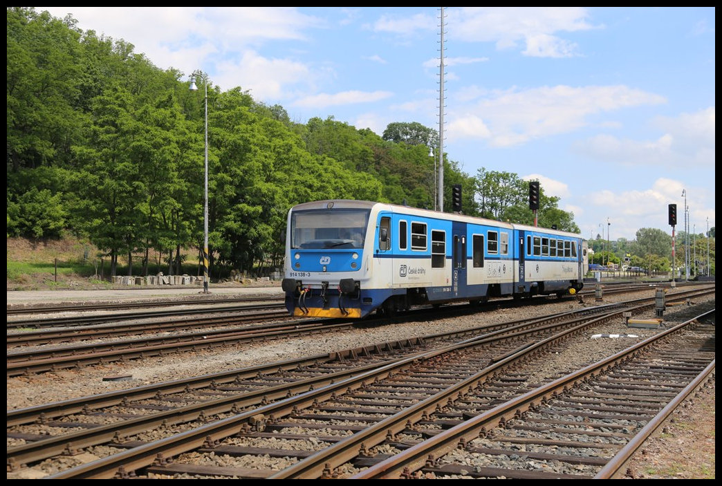 CD 742225-6 rangiert hier am 6.6.2024 um 12.00 Uhr mit einem Tankzug im Hauptbahnhof Ceska Lipa.